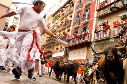 Dos corredores resultaron corneados y otros tres con contusiones durante el cuarto encierro de la Feria de San FermÃn, en Pamplona, norte de España, que duro dos minutos y 29 segundos con toros de la ganaderÃa de Pedraza de Yeltes.
